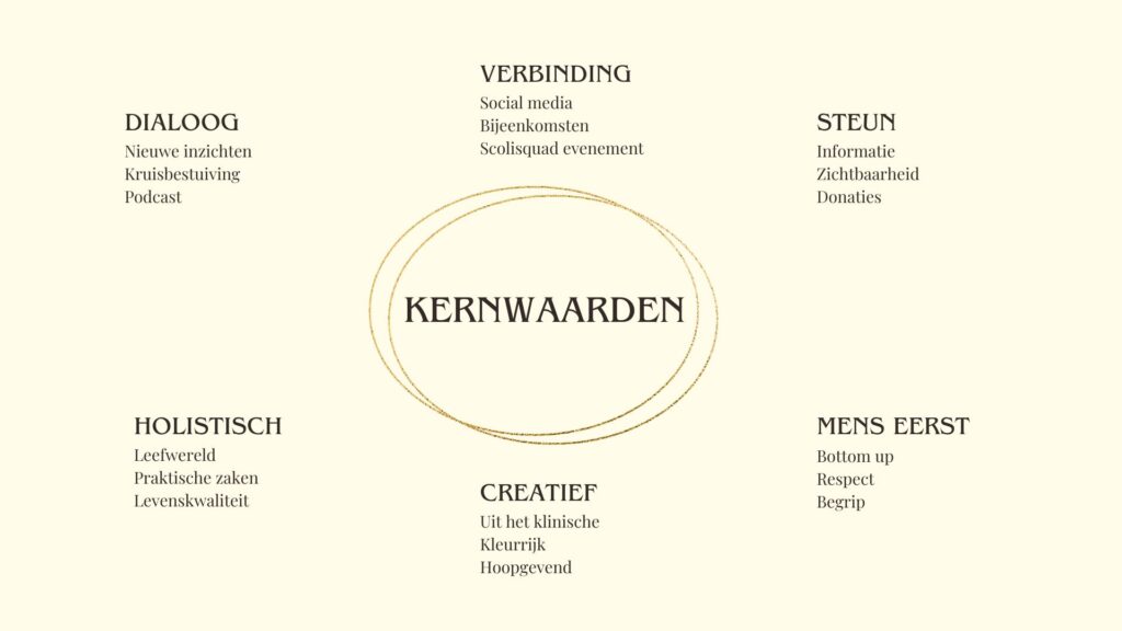 Iemand krijgt de diagnose scoliose. Daarbij komen allemaal vragen omhoog. Over behandelingen en een operatie is veel informatie te verkrijgen, maar er is een gat als het gaat om leven met scoliose. En die kunnen we alleen maar vullen, door met elkaar in gesprek te gaan.