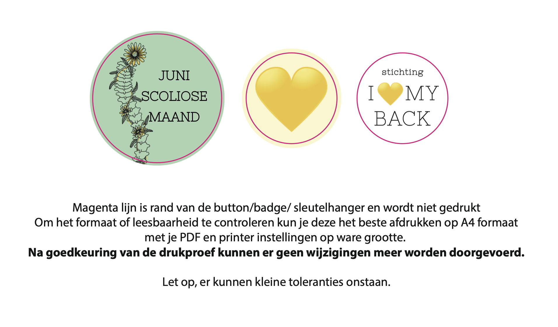 ✔️ Unieke scoliose-awareness buttons (1x 44mm, 2x 31mm)